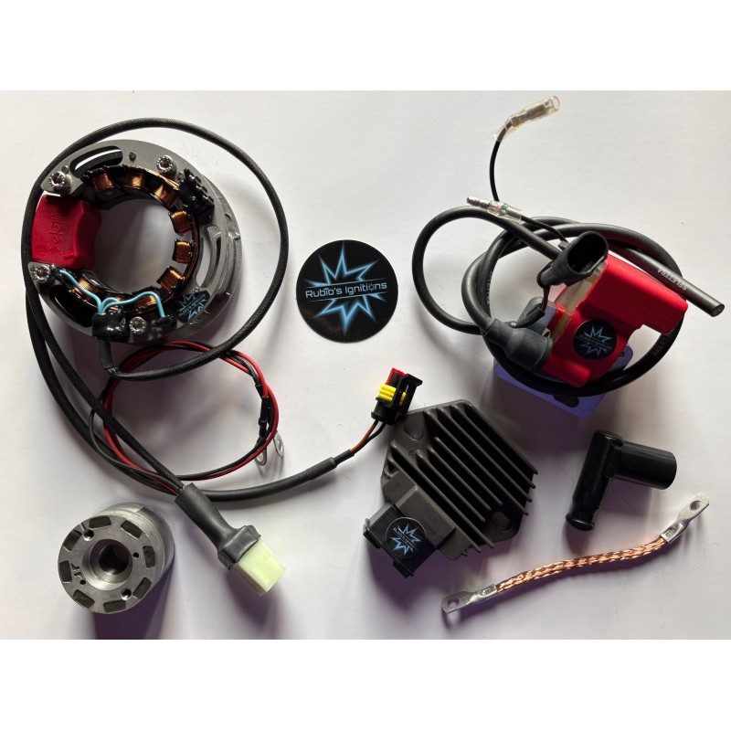 the ignition can be used without a battery (the customer will have to quantify the consumption of their electrical system if it is compatible with the correct produced) or even by connecting it to a rechargeable battery (recommended choice), even a small one to which to connect the electrical system of the motorcycle/scooter etc.