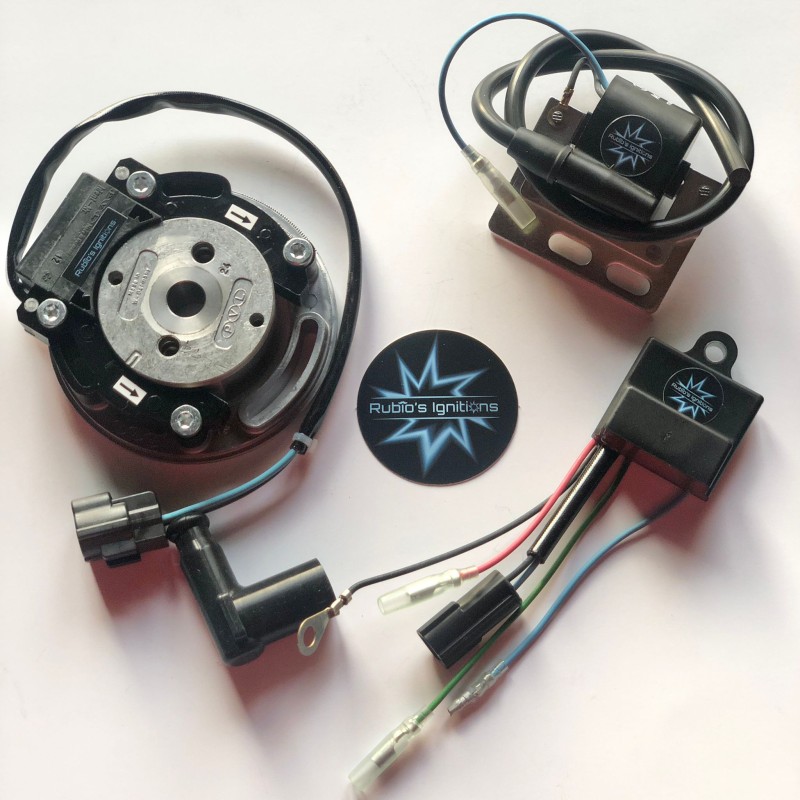 Producto de carreras, excluye el sistema eléctrico, por lo que tendrá que instalar baterías para alimentar los instrumentos / luces, la corriente producida es sólo para la chispa